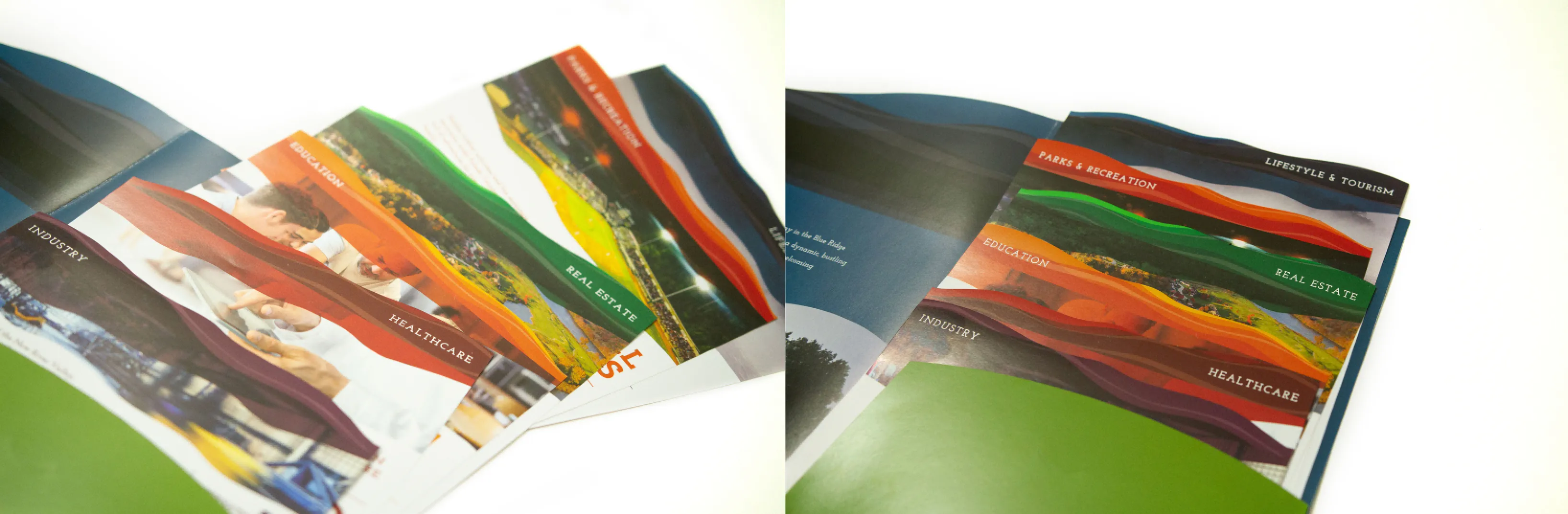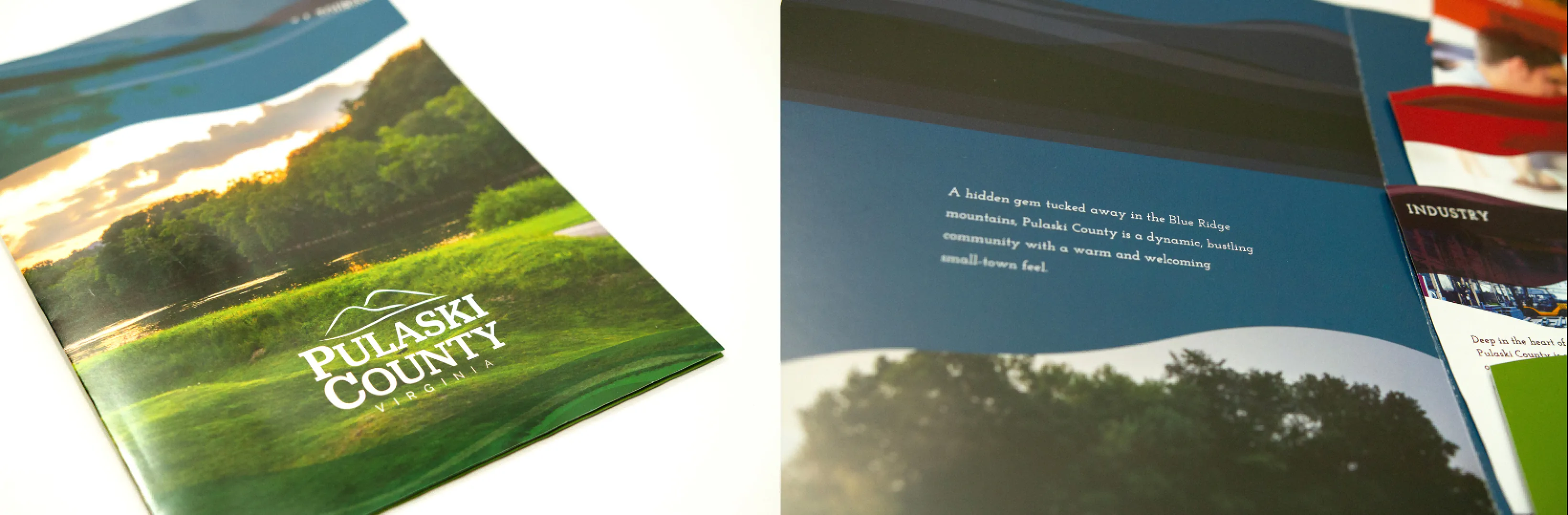 Visually focused and simplistic strategies were also utilized in Pulaski County Tourism’s promotional collateral for economic development assets.